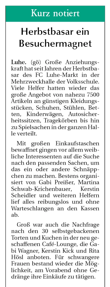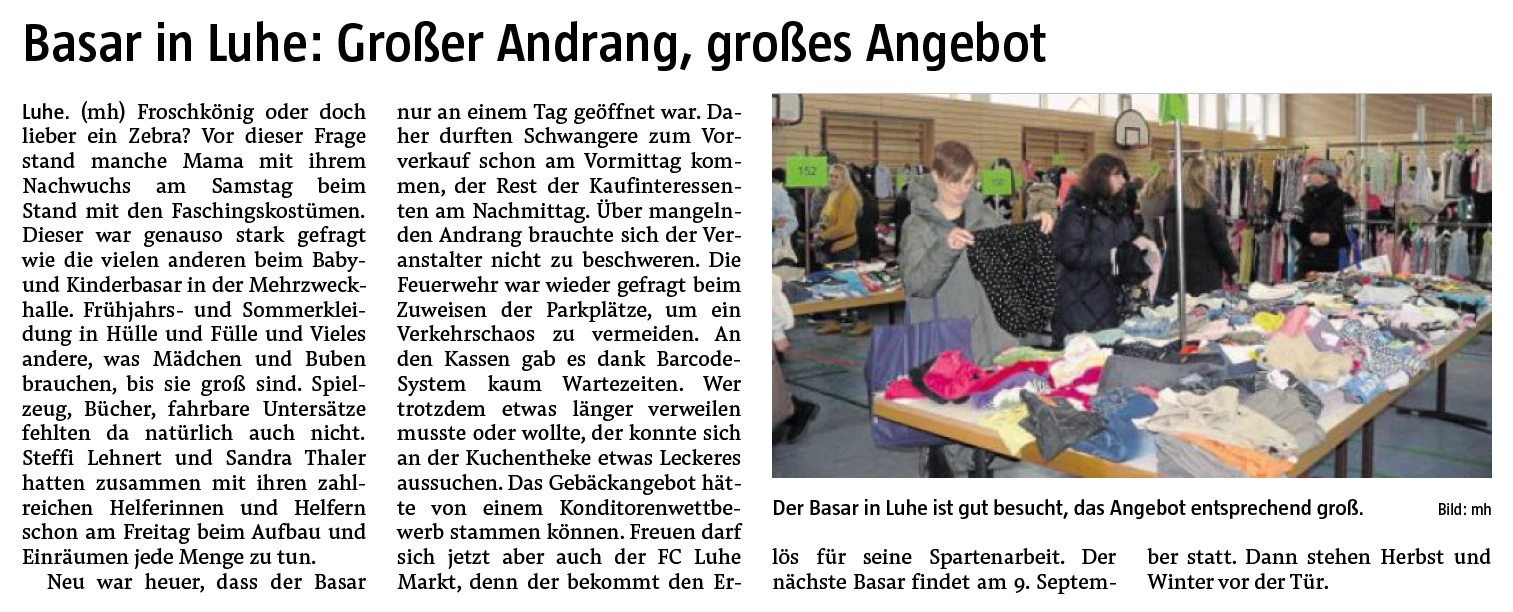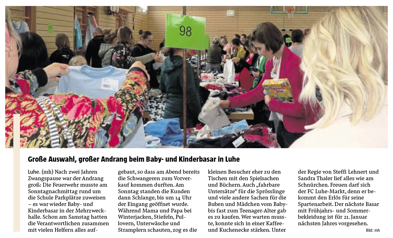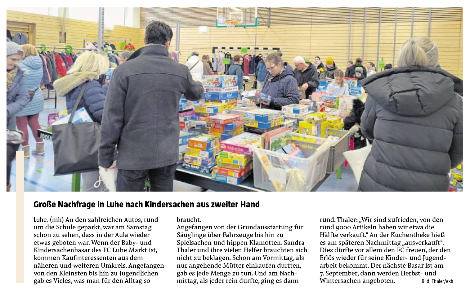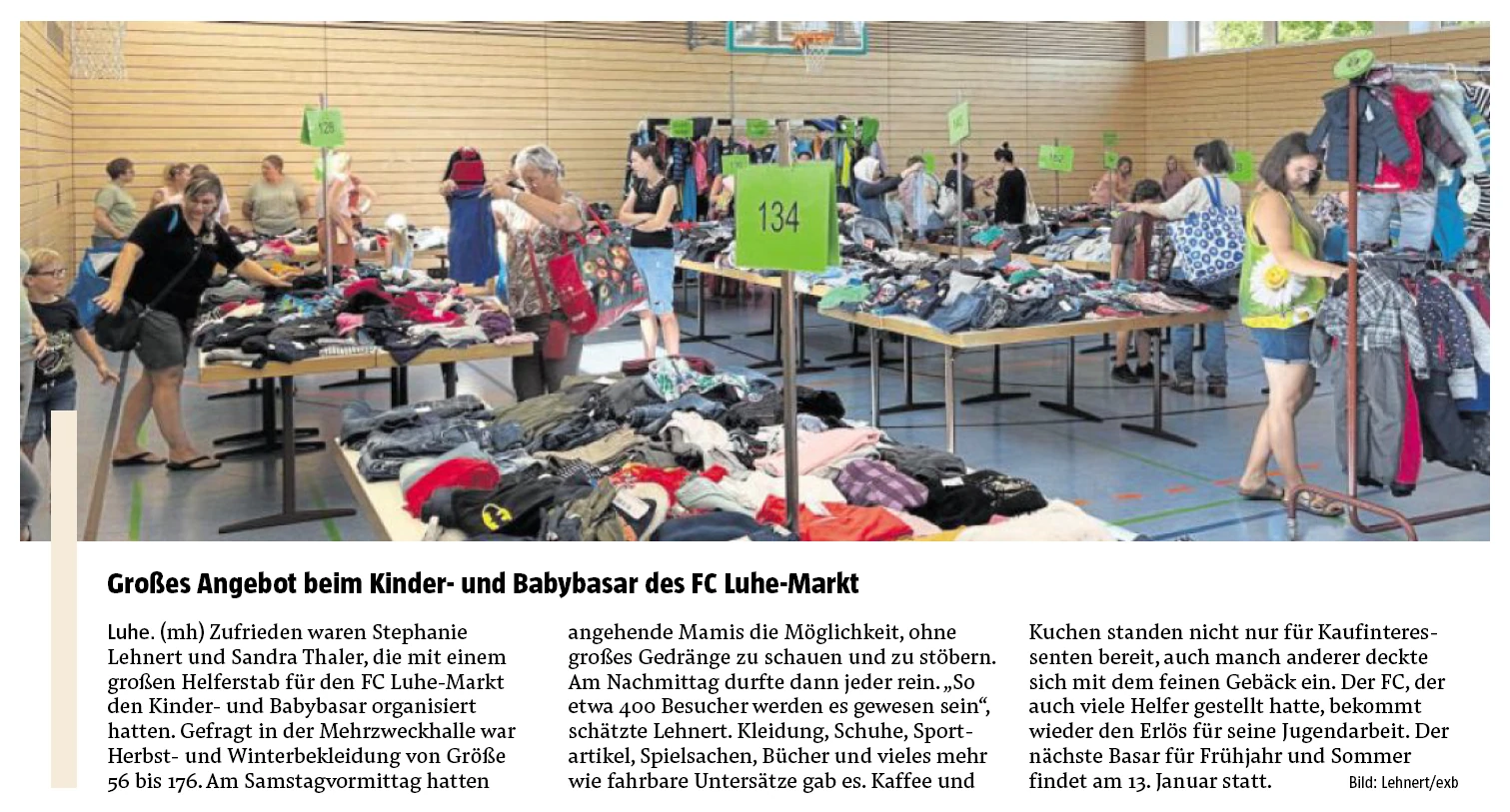 - : Großes Angebot beim Kinder- und Babybasar des FC Luhe-Markt