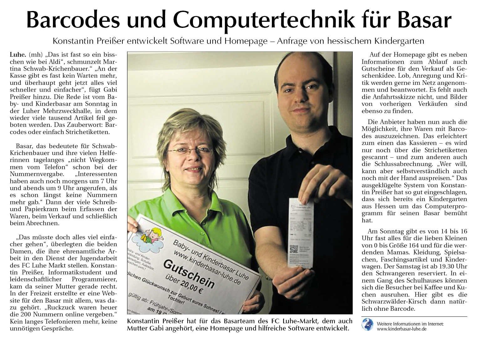 - : Barcodes und Computertechnik für Basar – Konstantin Preißer entwickelt Software und Homepage
