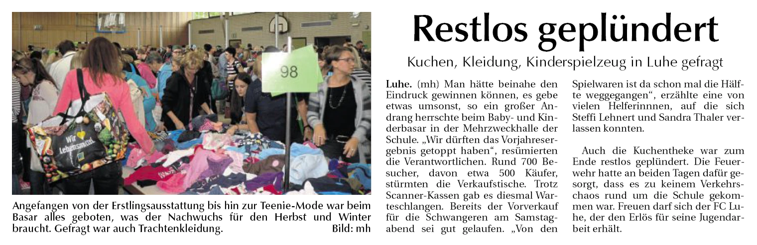 - : Restlos geplündert – Kuchen, Kleidung, Kinderspielzeug in Luhe gefragt